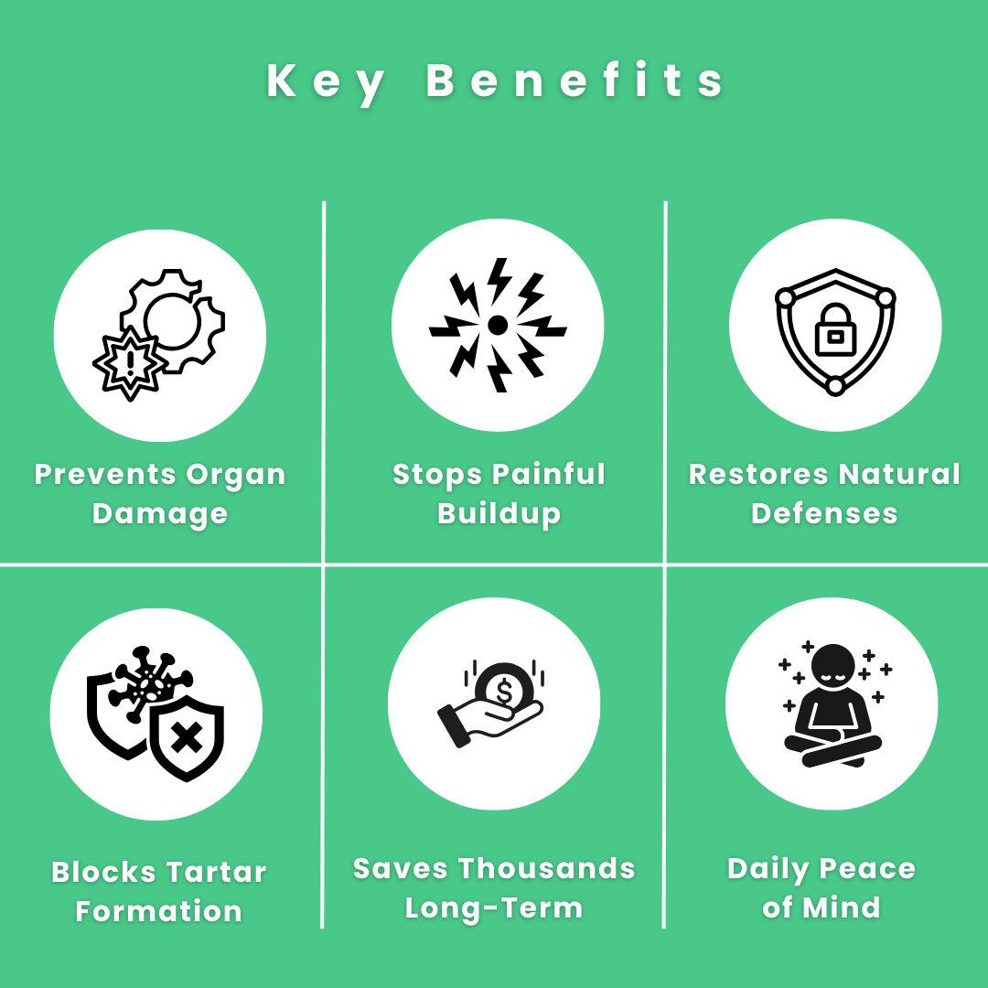 - Systemic Softening: We use Ascophyllum Nodosum (Ocean Kelp), a nutrient that works through saliva to naturally soften the "glue" holding tartar to the teeth.